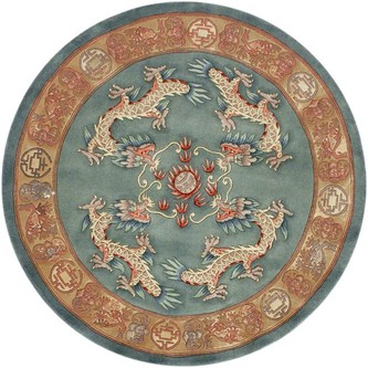 Premier Superwashed Chinese Design 442. The Beautiful Green background with the Striking Traditional style Dragons in the middle, blends perfectly in the Luxurious 5/8 pile.