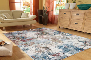 Washable , rubber backed rug that can go in the washing machine on a cold cycle with a mild detergent.Dry flat or on a cool dryer cycle.Machine woven rug from China.Rubber backed so no need for anti slip underlay.Manufacturers describe the colour as Palette.