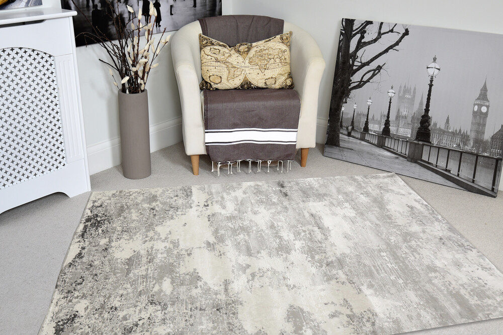 Machine woven rug made from 100% Polyester in Turkey. low pile rug with very soft feel to it. This rug is classed as Grey by the manufacturers.