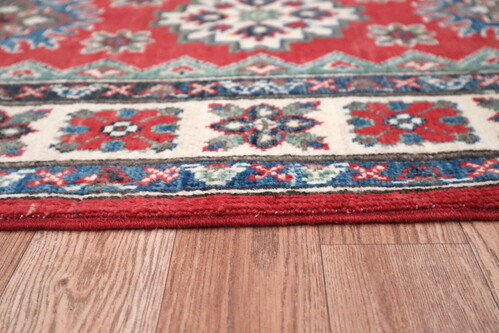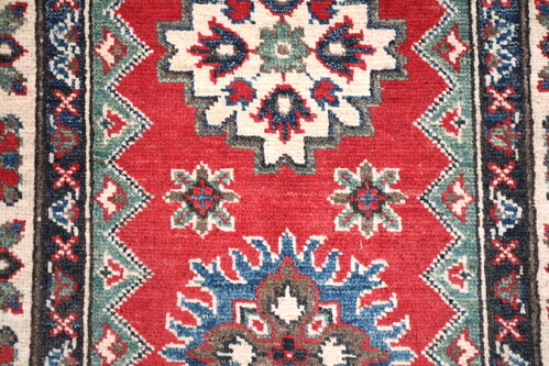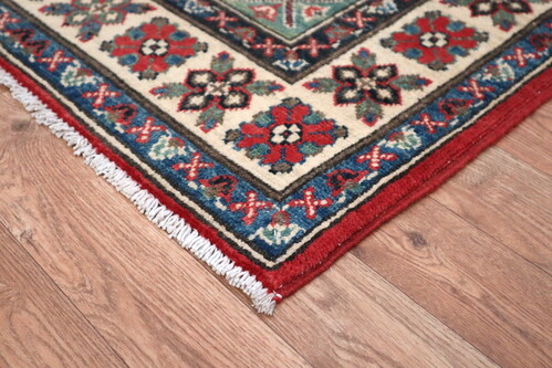 Afghan Kaynak rugs are based on centuries old styles and designs. Using mainly bigger and bolder designs and using the colours of Red, Dark Blue and Cream these striking rugs work well at brightening up dark rooms.