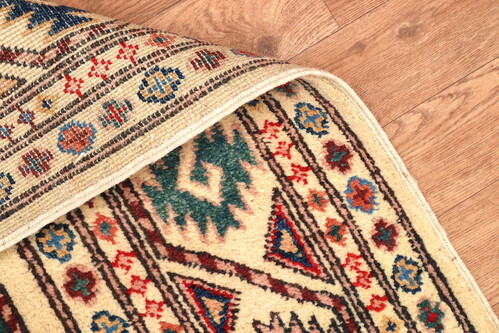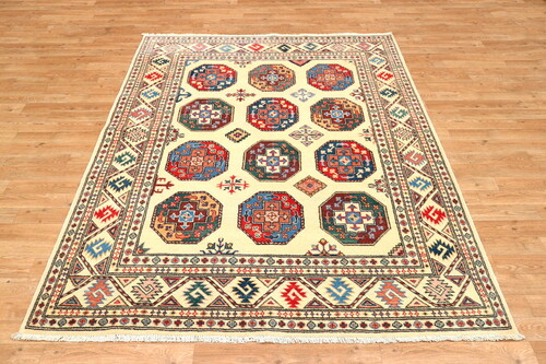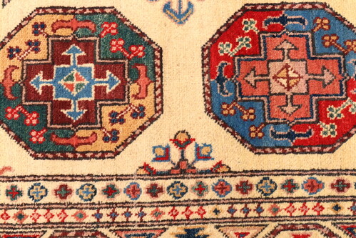 Afghan Kaynak rugs are based on centuries old styles and designs. Using mainly bigger and bolder designs and using the colours of Red, Dark Blue and Cream these striking rugs work well at brightening up dark rooms.