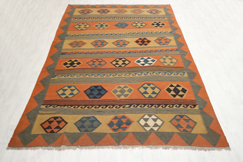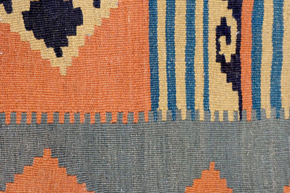 Flat pile modern kelim rug , approximately 30 years old , handknotted in Iran and made from 100% wool, ideal for wooden floors.