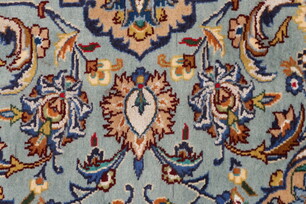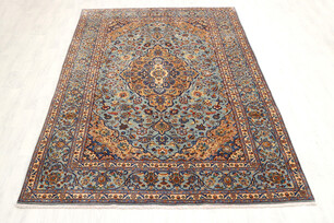 Bring a touch of timeless grandeur to your home with a Persian Keshan rug. Whether placed in a formal living room, a cozy study, or an elegant dining area, these rugs effortlessly elevate the ambiance, adding a touch of opulence and refinement to your space. Let the artistry and craftsmanship of Persian Keshan rugs become the centerpiece of your interior design, creating a haven of beauty and sophistication. This rug is around 20 years old. As with most Iranian (Persian) rugs they are used in Iran first then sold through the bazaars and exported around the world. Before exporting the rugs are washed and checked for faults. These rugs are in very good condition with only light previous usage.