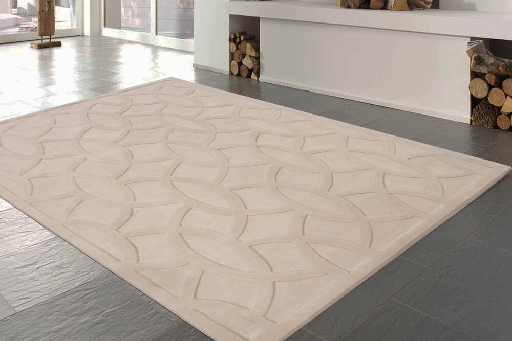 Hand made 100% wool rug. Sculpted pile, Colour for this rug is classed as Ivory by suppliers.