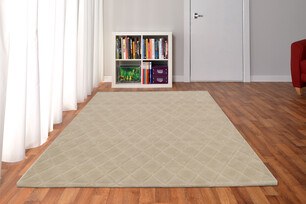 Hand made 100% wool rug. Sculpted pile, Colour for this rug is classed as Beige by suppliers.