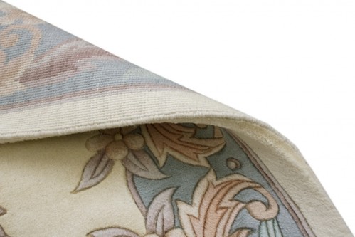 Premier Superwashed Chinese Design 132. The colours and detail in this rug are truly beautiful. Set on a Cream background, with a mix of Subtle Greens, Pinks and Beiges, makes this rug look elegant in any room.
