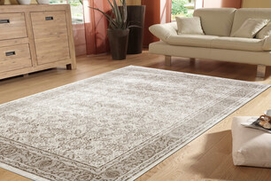 Machine woven rug made from 100% Polyester in Turkey. low pile rug with very soft feel to it. This rug is classed as Grey/Khaki by the manufacturers.