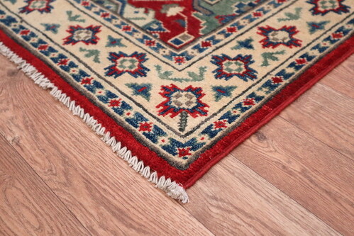 Afghan Kaynak rugs are based on centuries old styles and designs. Using mainly bigger and bolder designs and using the colours of Red, Dark Blue and Cream these striking rugs work well at brightening up dark rooms.