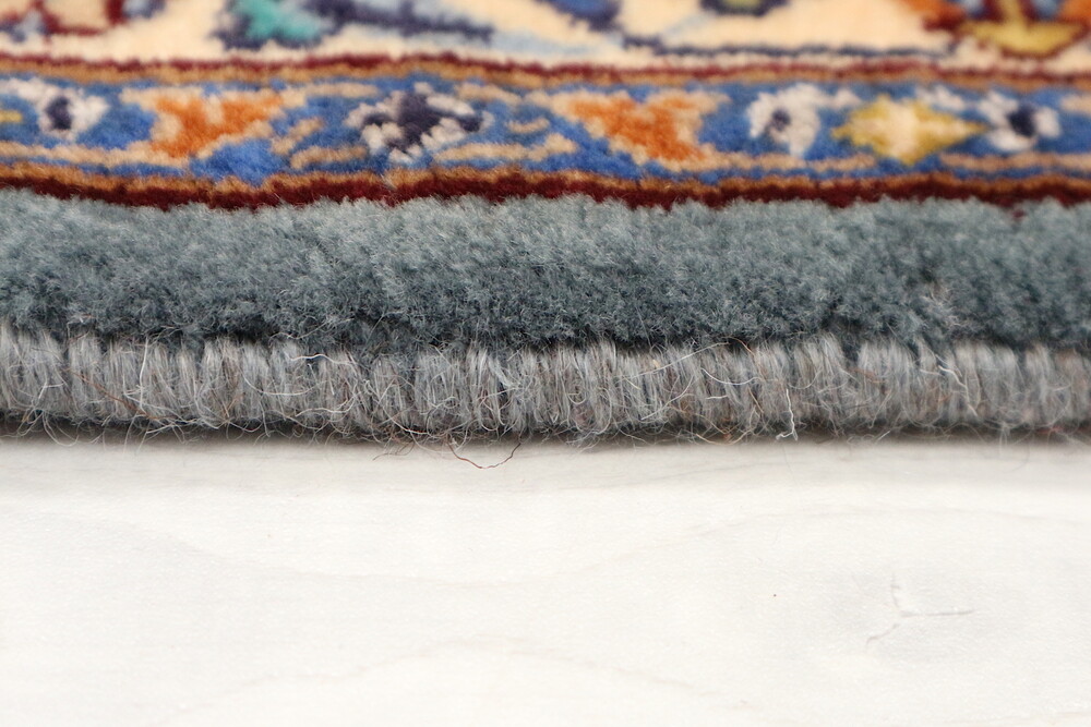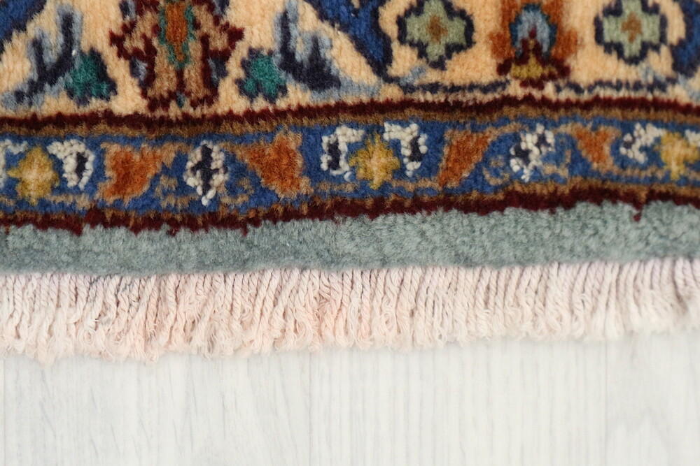 Bring a touch of timeless grandeur to your home with a Persian Keshan rug. Whether placed in a formal living room, a cozy study, or an elegant dining area, these rugs effortlessly elevate the ambiance, adding a touch of opulence and refinement to your space. Let the artistry and craftsmanship of Persian Keshan rugs become the centerpiece of your interior design, creating a haven of beauty and sophistication. This rug is around 20 years old. As with most Iranian (Persian) rugs they are used in Iran first then sold through the bazaars and exported around the world. Before exporting the rugs are washed and checked for faults. These rugs are in very good condition with only light previous usage.