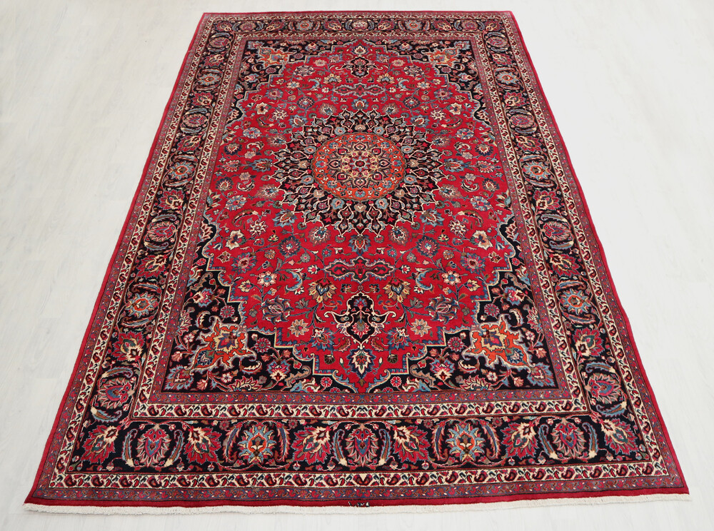 Persian Meshed rug hand knotted in Iran from 100% Wool. Beautiful , striking , traditional.